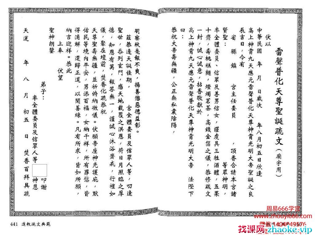 雷普声化天尊诞圣疏文(庙宇用)
