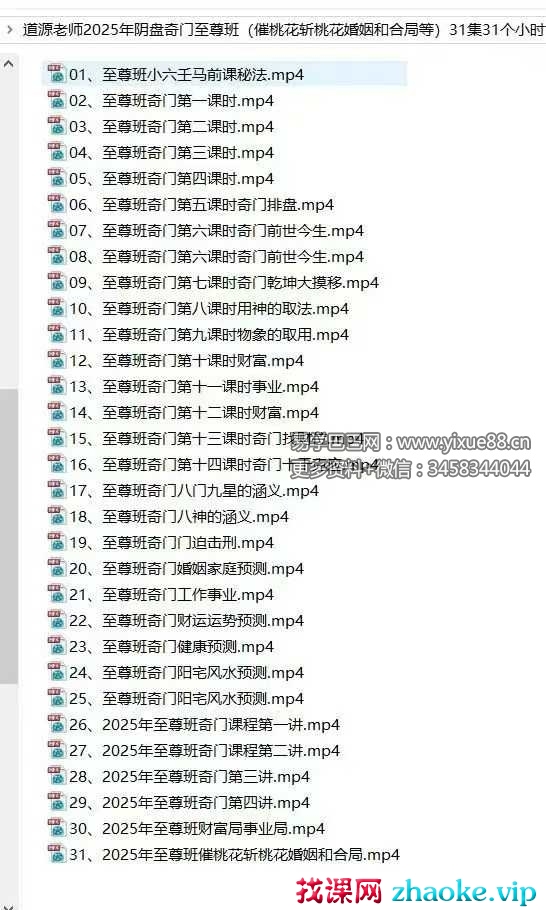 道源老师2025年阴盘奇门至尊班视频31集31个小时。内容包括催桃花斩桃花婚姻和合局等