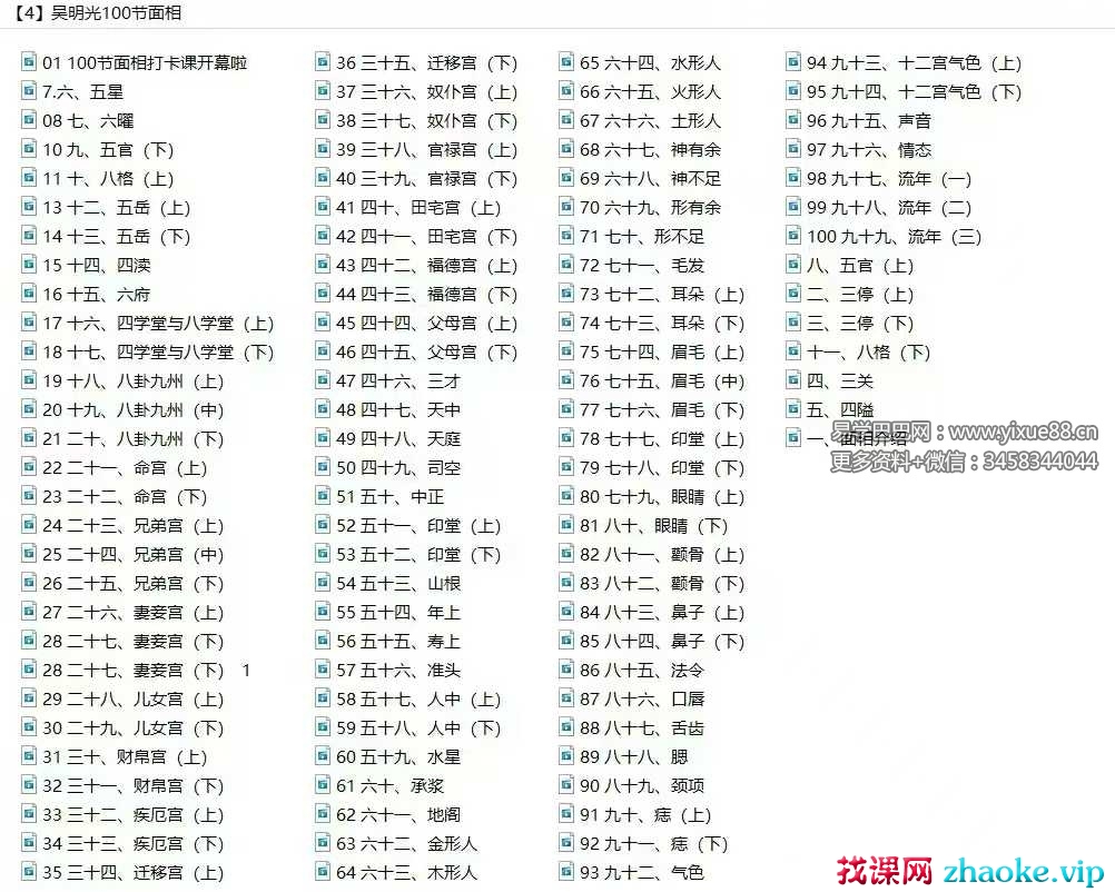 吴明光《面相课程》教学视频100集,每个视频8分钟左右。