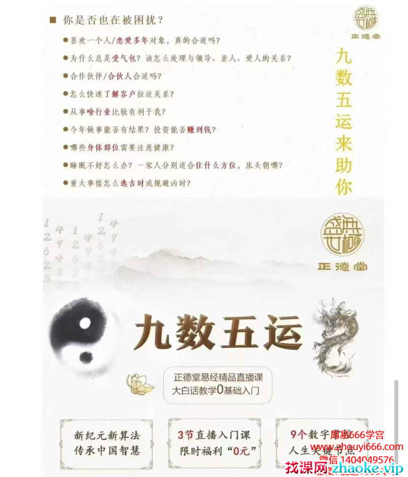 破译九数五运,掌控自在人生 。“九数五运速算法””0基础也能快速掌握,无门槛9个数字,一学就会一用就通,不用死记硬背,可指导感情、事业、家居、健康各方面。